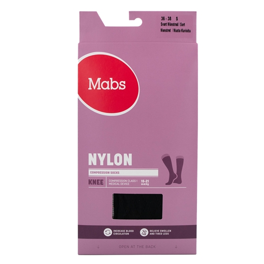 Mabs Nylon Knee Design er elegante mønstrede knæstrømper i 140 denier med kompression i nylon. Til hverdagsbrug. Øger blodgennemstrømningen og giver lindring til hævede og trætte ben. Modvirker risikoen for årebrok og blodprop og giver behagelig støtte.