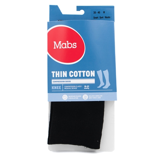 Mabs Cotton Knee er tynde og behagelige bomuldsstrømper med kompression velegnet til hverdagsbrug.