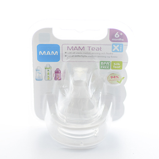 Mam Silk Teat flaskesut med X-flow, der egner sig til børn fra 6 måneder.