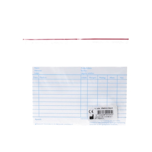 Doseringskortet har plads til 2×10 ordinationer på hvert ark.