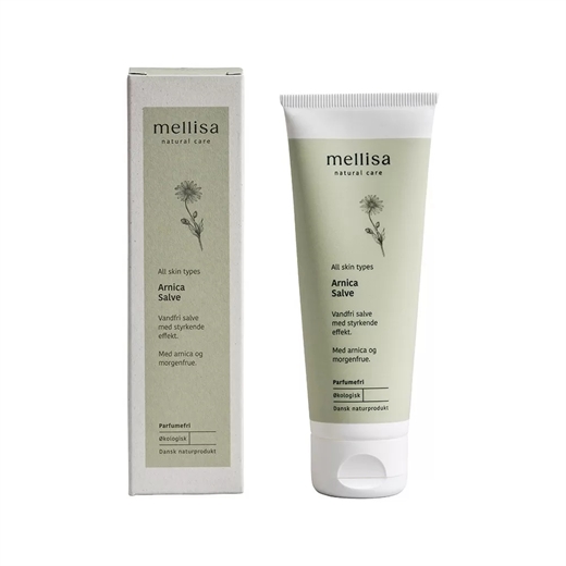 Mellisa Arnicasalve er en vandfri universalsalve til lindring af sår, skrammer og irriteret hud.