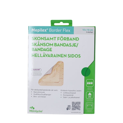 Mepilex Border Flex er en alt-i-én silikone skumbandage, der effektivt absorberer og holder på sårvæske (ekssudat), men samtidig holder såret tilstrækkelig fugtigt.