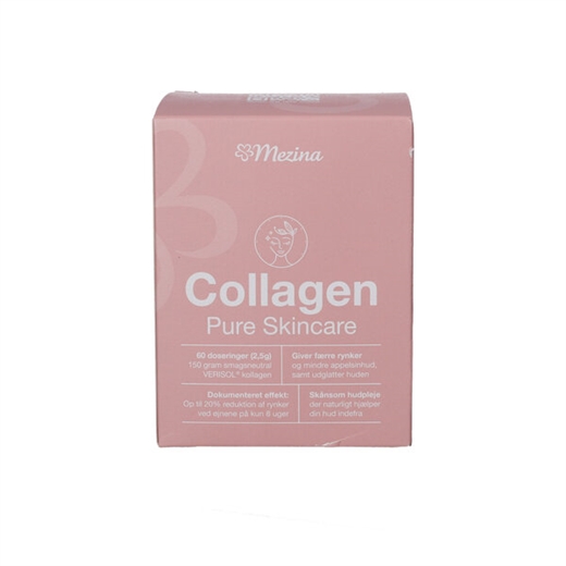 Mezina Collagen Pure Skincare er et kosttilskud med hydrolyserede kollagenpeptider til vedligeholdelse af huden.