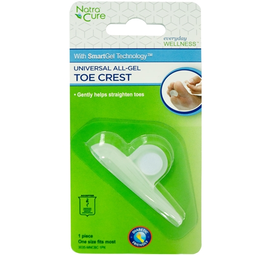 NatraCure® Universel tåbeskytter hjælper med at lindre ubehag fra hammertæer eller tæer med leddegigt ved at hjælpe med at lette trykket på tåspidserne og reducere belastningen på mellemfodsknoglerne. Gang gøres lettere og mere behagelig. Gelen frigiver langsomt mineralsk olie af medicinsk kvalitet (USP), som dokumenteret blødgør og fugter huden.