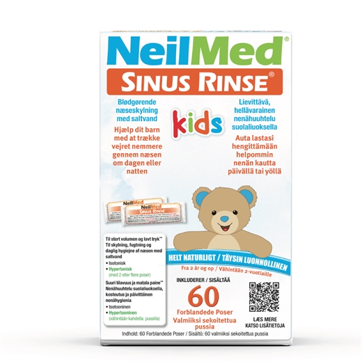 60 stk. portionsposer til saltvandsopløsninger til brug sammen med Sinus Rinse Kids og andre næseskylningsmetoder. Bland med 120 ml rent vand.