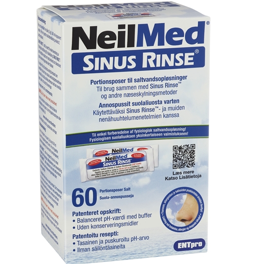 Neilmed Sinus Rinse Refill er 60 stk. portionsposer til saltvandsopløsninger til brug sammen med Sinus Rinse og andre næseskylningsmetoder.