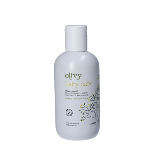 Olívy Baby care indeholder blandt andet koldtpresset ekstra jomfruolivenolie, der blødgør og tilfører naturlig fugt til huden, samtidig med at den danner en beskyttende hinde mod urin og afføring.