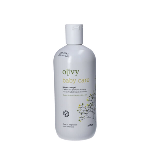 Olívy Baby care indeholder blandt andet koldtpresset ekstra jomfruolivenolie, der blødgør og tilfører naturlig fugt til huden, samtidig med at den danner en beskyttende hinde mod urin og afføring.