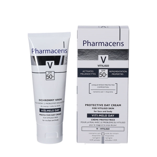 Pharmaceris V Viti-Melo Day Protective Cream er en beskyttende dagcreme til vitiligo påvirket hud i ansigtet og på kroppen.