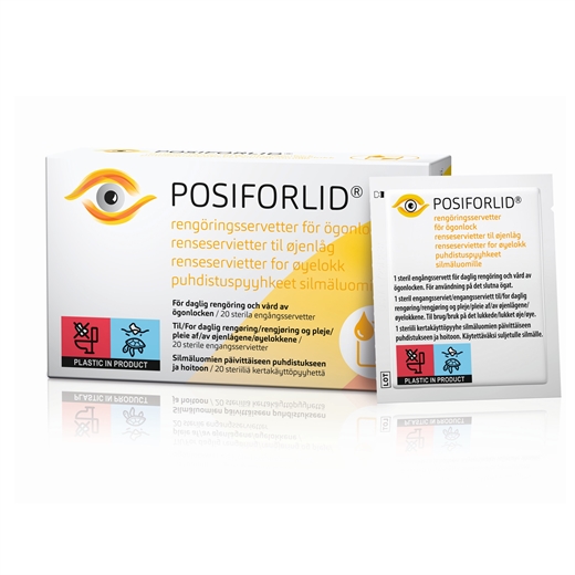 POSIFORLID® øjenlågshygiejneklude er forfugtede, sterile engangsklude, der skånsomt fjerner aflejringer som støv, pollen og skorpedannelse på øjenlågene eller mellem øjenvipperne. Disse talgkirtler producerer en lipidholdig sekretion, som er en del af tårefilmen og beskytter vores øjne mod at tørre ud for hurtigt.