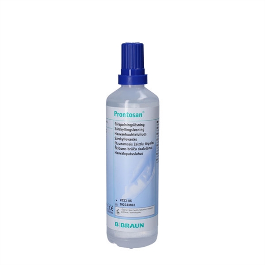 Prontosan Sårskyllevæske anvendes til rensning, skylning og fugtning af akutte og kroniske sår, inficerede sår samt 1. og 2. grads forbrændinger.