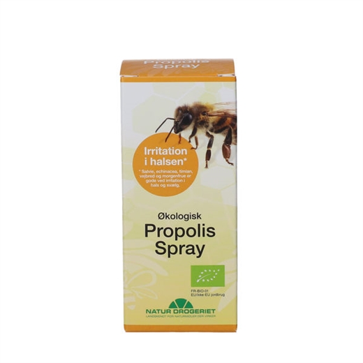 Økologisk Propolis Spray anvendes til irritation i hals og svælg.