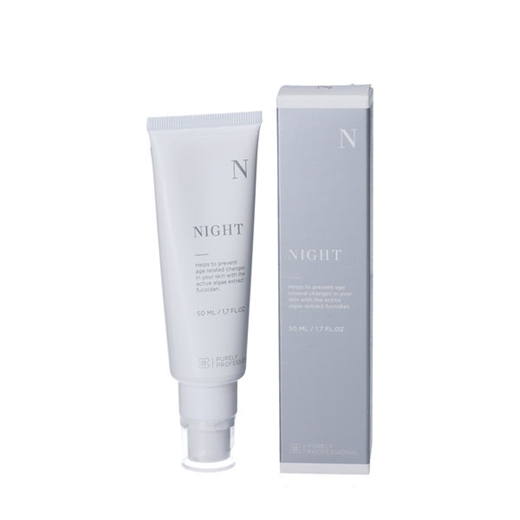 Purely Professional NIGHT indeholder et raffineret algeekstrakt, – fucoidan, der medvirker til at forhindre disse processer. Fucoidan er desuden antibakterielt hvilket reducerer forekomsten af urenheder i huden.