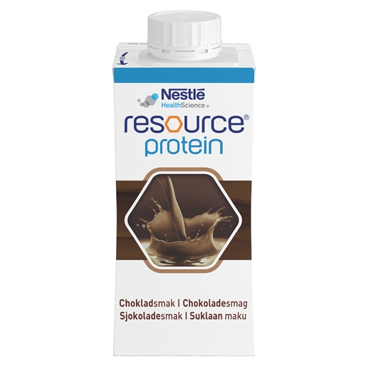 Resource® Protein er en ernæringsmæssigt fuldgyldig ernæringsdrik med højt proteinindhold og relativt lavt fedtindhold. Til ernæringsmæssig håndtering af patienter med underernæring eller i ernæringsmæssig risiko, som har et forhøjet proteinbehov. Passer også godt til patienter der har behov for en ernæringsdrik med lavere fedtindhold.