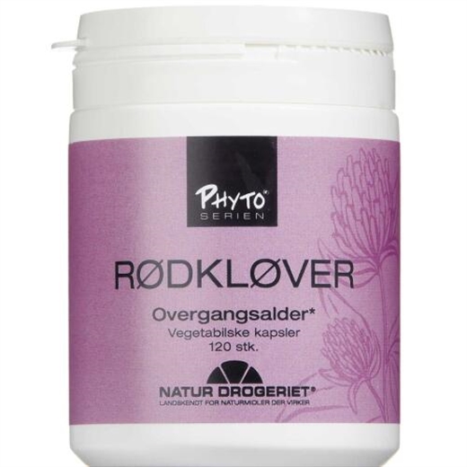 Natur-Drogeriets Rødkløver kapsler er et kosttilskud med indhold af pulveriseret rødkløver (Trifolium pratense L.).