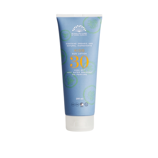 En mild og vandafvisende sollotion, der nænsomt og effektivt beskytter dit barns hud mod solens skadelige UVA- og UVB-stråler. Kids Sun Lotion er 100 % fri for parfume, men er rig på fugtgivende agurkekstrakt, nærende rapsolie, beroligende kamille og kølende aloe vera. Kids Sun Lotion giver huden ro og tilfører den fugt, dit barn har brug for. Cremen har en fin og let konsistens, der gør den nem at smøre ud. Kids Sun Lotion trænger ind i huden med det samme. Den fedter ikke, klistrer ikke, hvidter ikke.