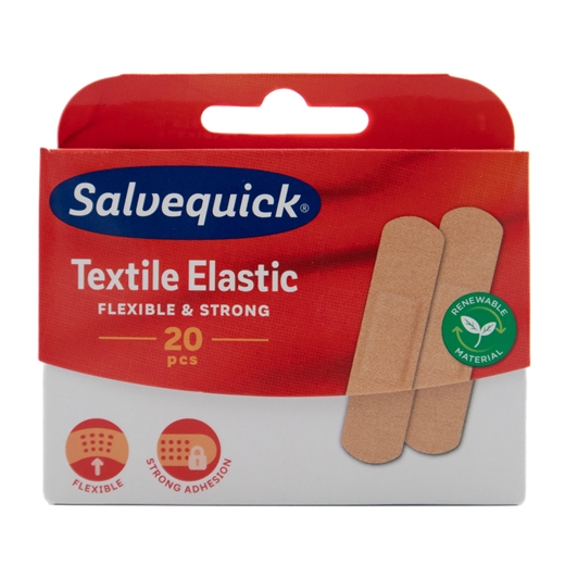Salvequick Textile Elastic Plaster beskytter såret mod snavs, samtidig med det lader huden ånde, så såret hurtigere heler. Textile plasteret er ekstra elastisk, så det sidder godt fast på den ujævne hud omkring albuer, knæ og andre led. Plasteret har en god klæbeevne, og bliver hvor det skal hele dagen! Dette plaster er lavet i en nude farve, så det næsten ikke kan ses på huden.