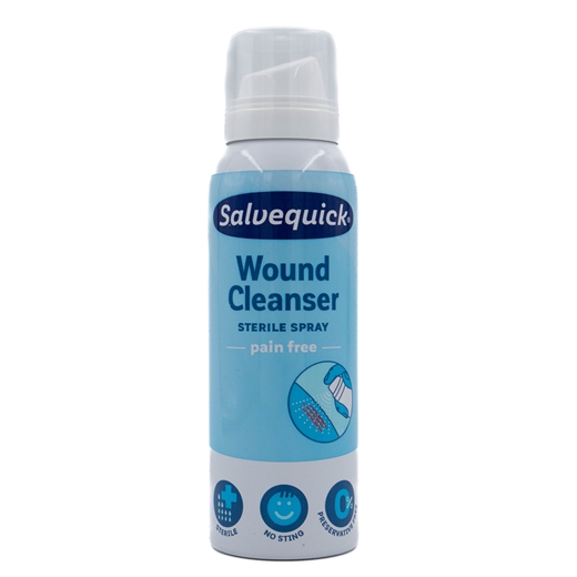 Denne Wound Cleanser Spray fra Salvequick er en naturlig og smertefri sårrens, som er helt uden konserveringsmidler. Sårrensen er steril og fjerner effektivt snavs og bakterier fra såret. Sprayen er en effektiv og nem måde at rense både små og store sår og er ideel til hjemmet, på rejsen eller på udflugten. Sprayen er børnevenlig og svier ikke på huden.