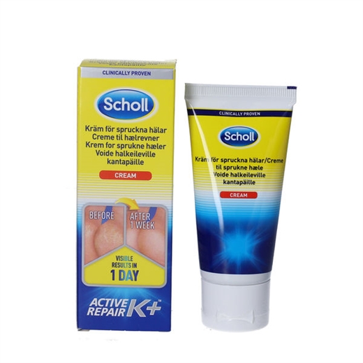 Scholl Professional Active Repair K+ er en fodcreme, der genopretter grove, ru tørre og revnede hæle.