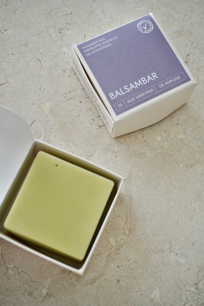 Simpelt balsambar 01 er en fast balsam. Den kan benyttes i håret efter vask med shampoobaren.