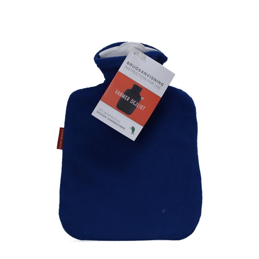 Varmedunken er forsynet med et aftageligt blåt stofbetræk i en blød fleece-kvalitet, samt en krog til ophængning.
