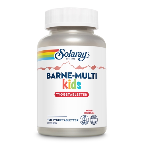 Solaray Barne-Multi er tyggetabletter med kirsebærsmag.