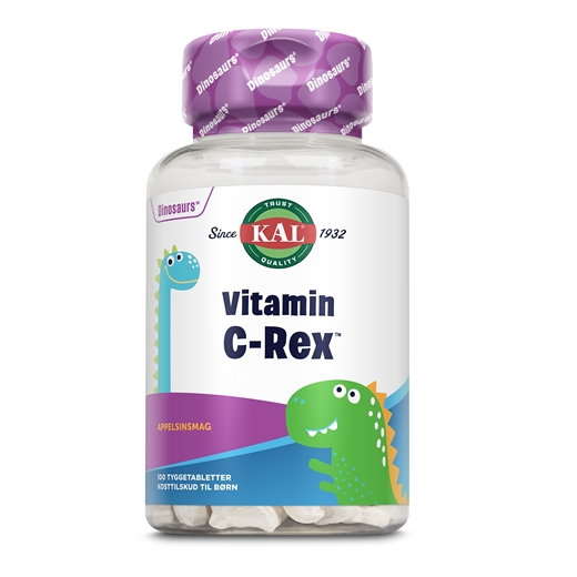 Solaray Dinosauers C-Rex er et kosttilskud med vitamin C, hybenfrugt, citron og acerolafrugt.