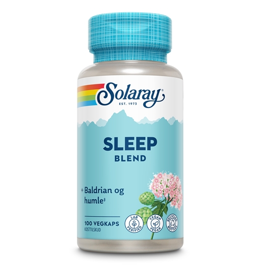 Solaray Sleep Blend er et kosttilskud, der indeholder ekstrakt af læge-baldrian (valerianerod – Valeriana officinalis L.) og ekstrakt af humleblomst (Humulus lupulus L., strobilis) samt ekstrakt af passionsblomst, mælkebøtte, kamille, læge-stokrose og hvidtjørn.