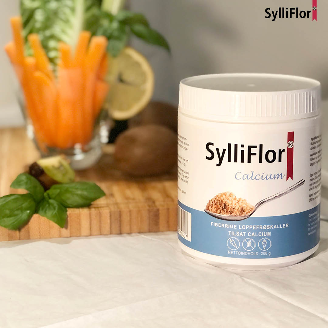SylliFlor Calcium er et velsmagende kostfiberprodukt, der er fremstillet af fiberrige frøskaller (Psyllium husks) tilsat calcium.