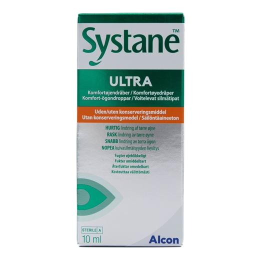 Systane ULTRA Komfort øjendråber (uden konservering) er øjendråber, der midlertidig lindrer symptomer såsom brænden og svien, forårsaget af tørre øjne.