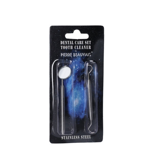 Sættet indholder et mundspejl og en dobbelt hovedet tandrenser.