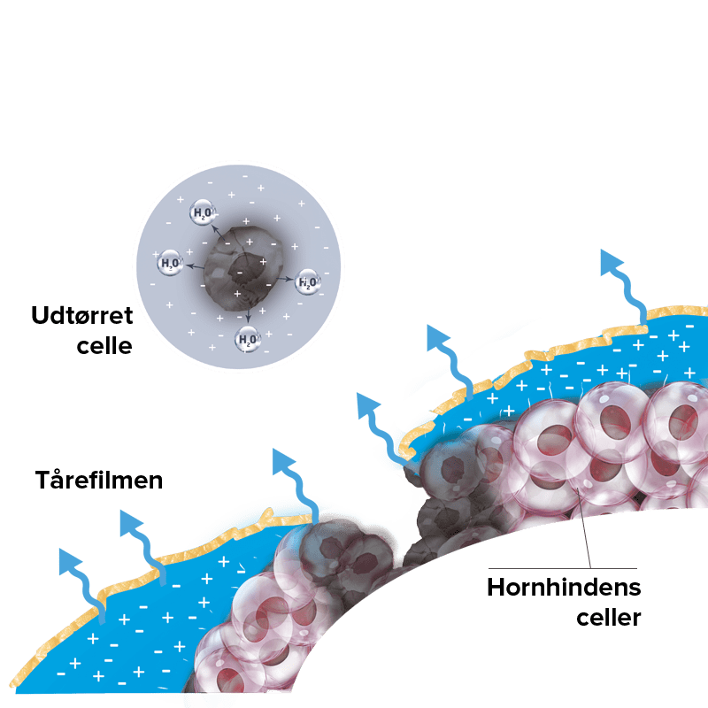 Natriumhyaluronat er et naturligt polysaccharid, der forekommer i det menneskelige øje og som har vandbindende egenskaber. Dette giver en forbedret fugtning og smøring af hornhindens overflade samt langvarig lindring.