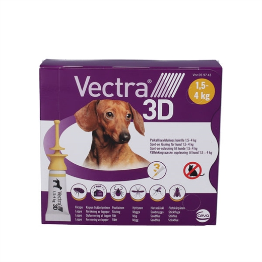 Vectra 3D Spot-on er et lægemiddel til behandling og forebyggelse af infestation med lopper og flåter samt sandfluer, myg og stikfluer hos hunde (Rhipicephalus sanguineus og Ixodes ricinus i en måned, og Dermacentor reticulatus i op til tre uger).