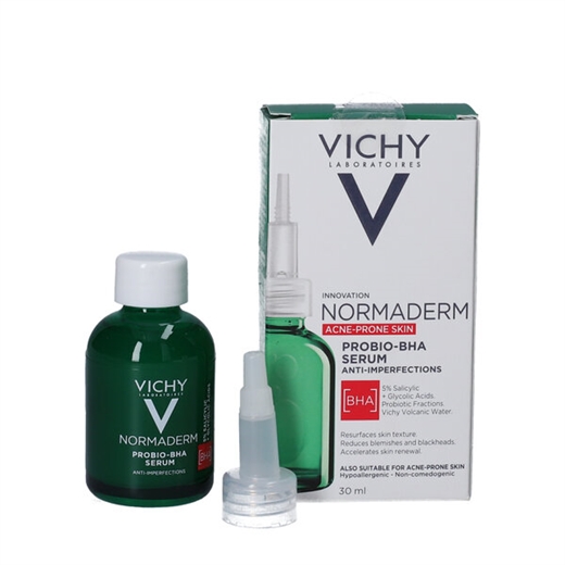 Vichy Normaderm Probio-BHA Serum er et eksfolierende serum til hud med tendens til bumser, hudorme og øget talgproduktion.