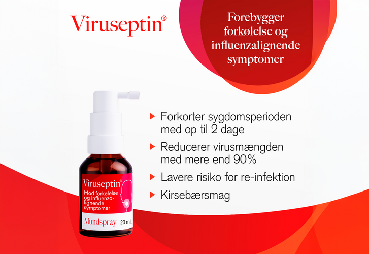 Viruseptin Mundspray er ikke medicin. Hvis der optræder feber, og/eller symptomerne er vedvarende, skal du kontakte din læge.