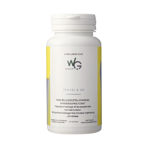 Fyldemiddel: Tyggegummibase* ((gummibase, isomalt, sødestoffer (acesulfam K, sucralose), aromaer, antiklumpningsmiddel (talkum), emulgator (mono- og diglycerider af fedtsyrer), antioxidant (tocopherolrig ekstrakt)), sødestoffer og overfladebehandlingsmidler (xylitol, isomalt, mannitol), aromaer, antiklumpningsmidler (talkum, siliciumdioxid, magnesiumsalte af fedtsyrer), ingefærekstrakt (Zingiber officinalis R.), overfladebehandlingsmidler (akaciegummi, carnaubavoks), farver (naturlig spirulina- og saflorekstrakt, brilliant blue FCF), magnesium bis-glycinat, quercetin (fra Sophora japonica L.), sødestoffer (sucralose, acesulfam K, thaumatin), vitamin B6.