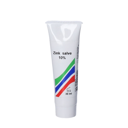 Zinksalven indeholder 10% zinkoxid, hvis udtørrende effekt afhjælper rødme og hudirritation på rød og irriteret hud, – f.eks ved rød barnenumse/bledermatit.